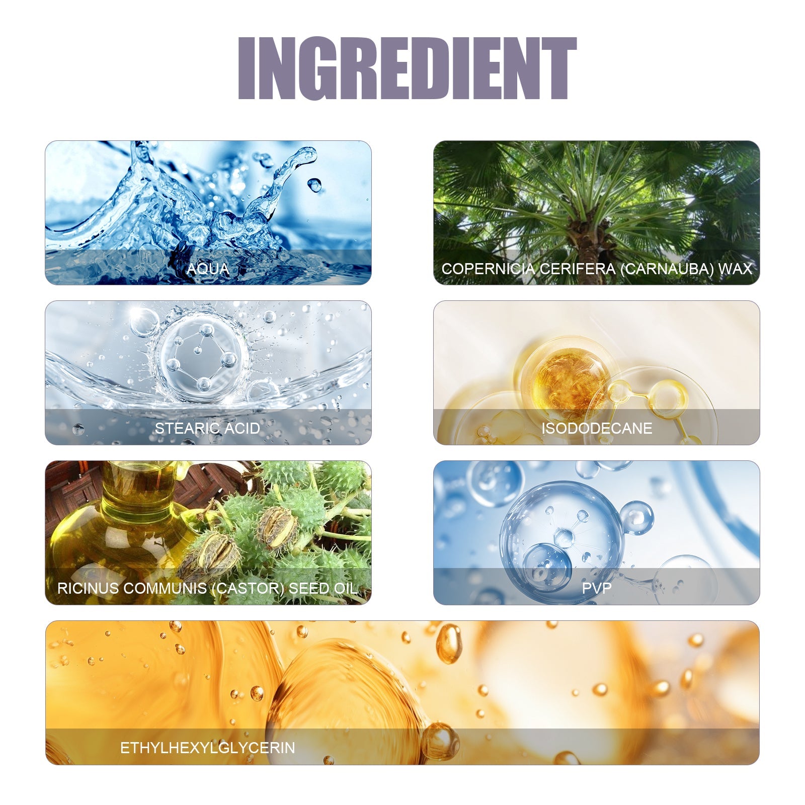 Our curling mascara contains Brazilian palm wax and stearic acid. It can change the length of the eyelashes in an instant, and the deep and large outline of the eyes will be surprisingly blooming, volumizing and curling, waterproof and slender, and dense with makeup. Its use method is very simple: roll the eyelashes from the root to the top with an eyelash curler, apply it along the root of the eyelashes with a mascara brush, which can be stacked 3-5 times to increase the length of the eyelashes, and then brush the lower eyelashes one by one with the brush head to enlarge the eyes. And can be thick ink curling.